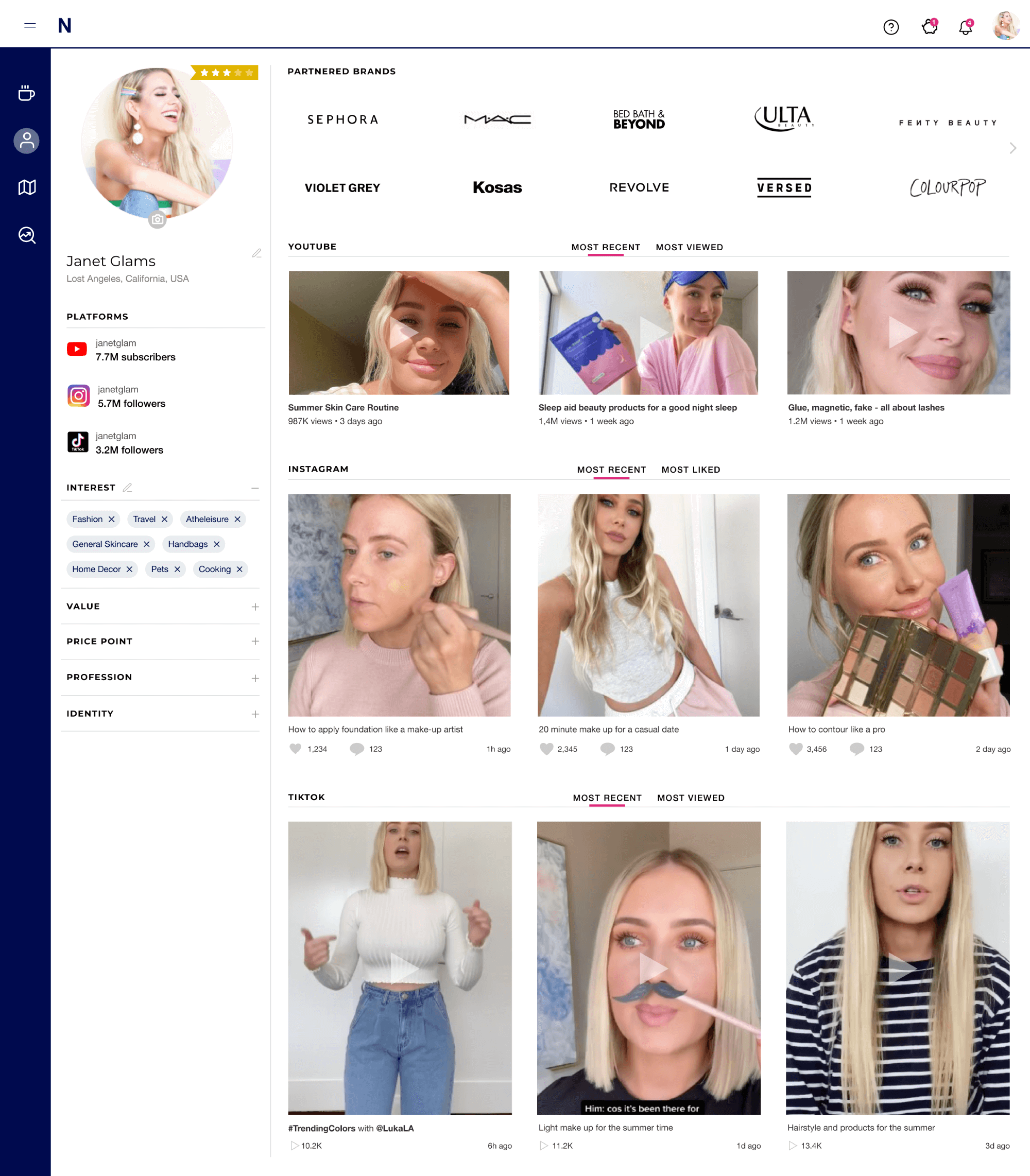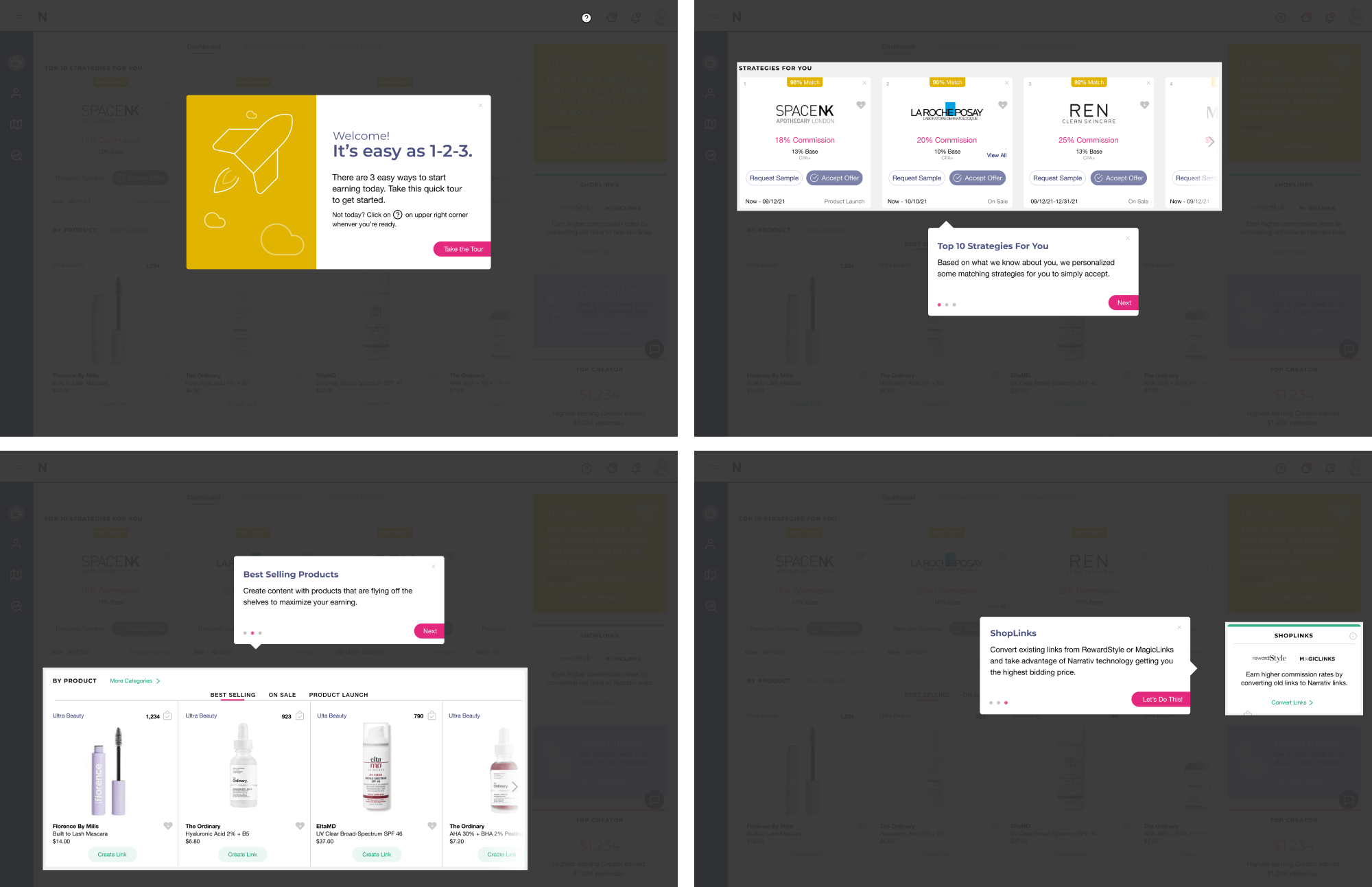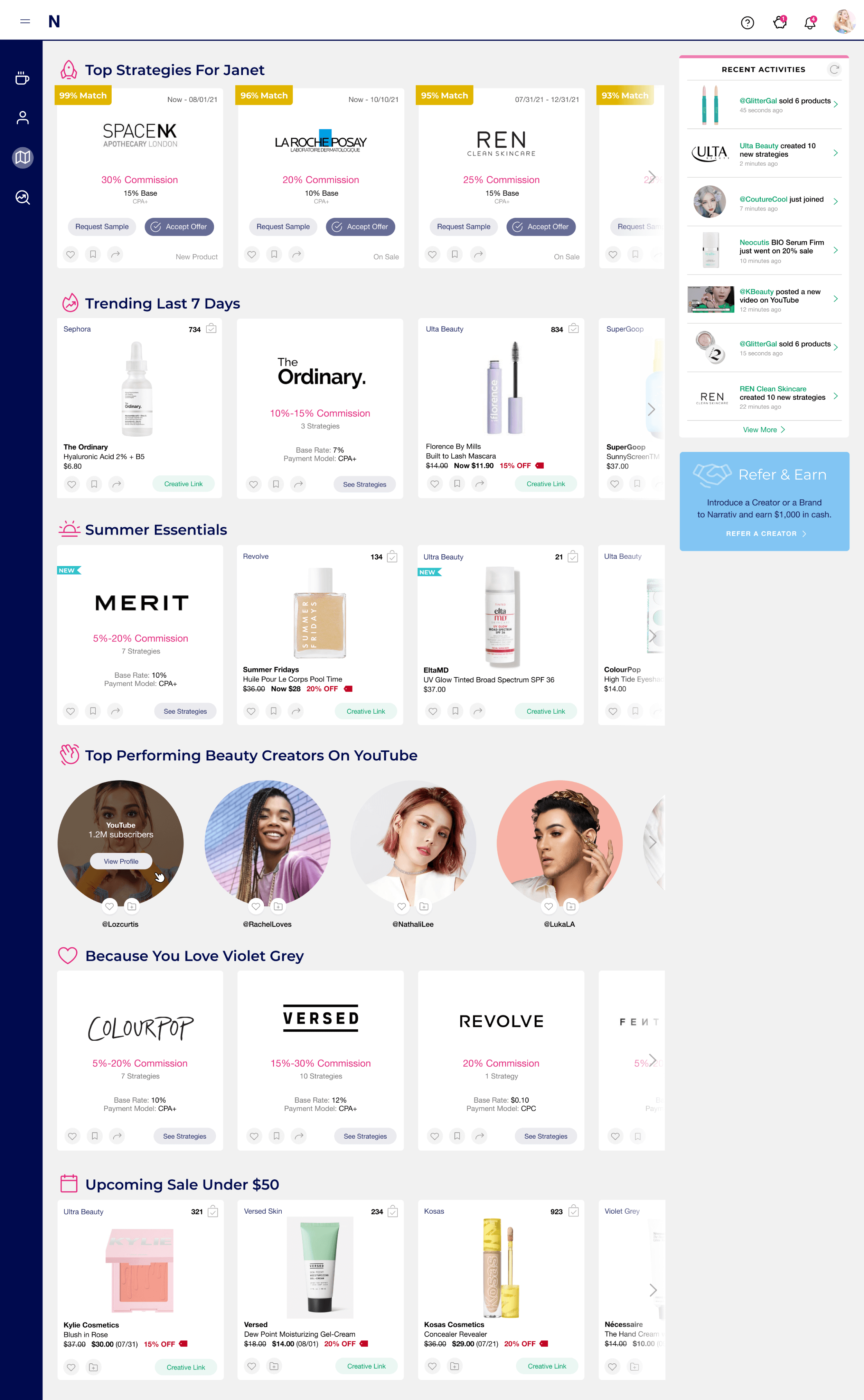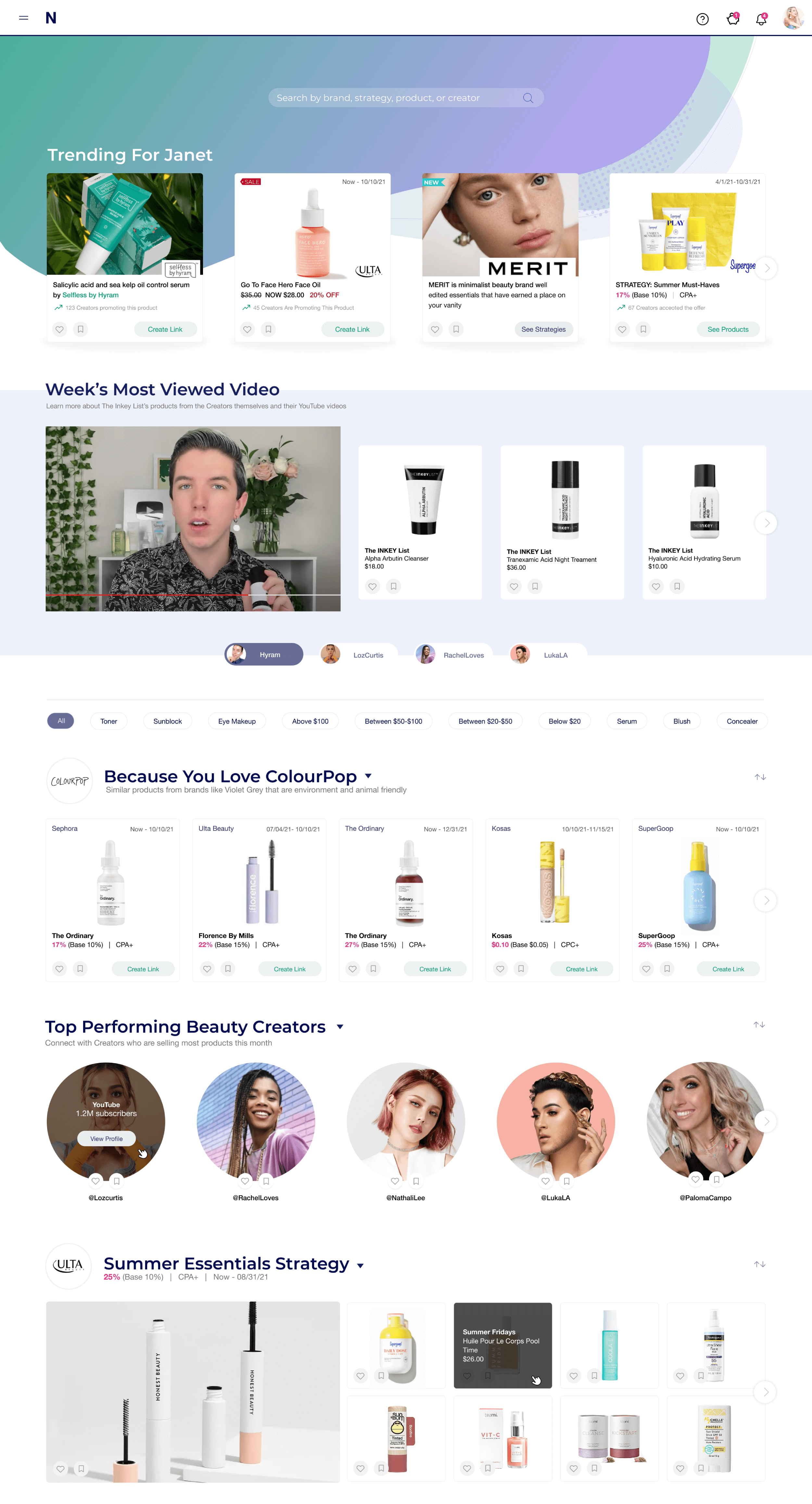 1. Developed product Discovery portal enabling creators to maximize monetization through brand partnerships, strategic matching algorithms, and peer content research capabilities.